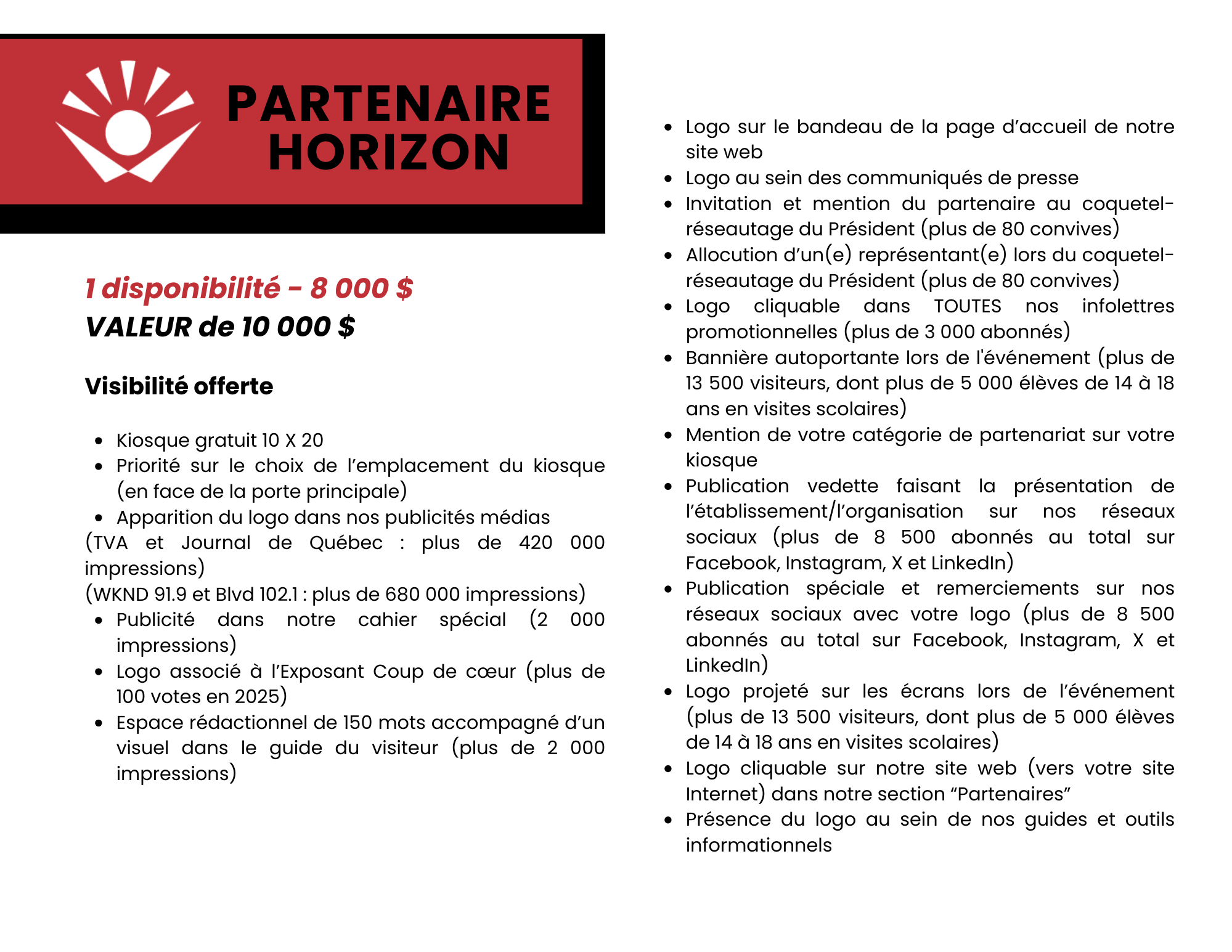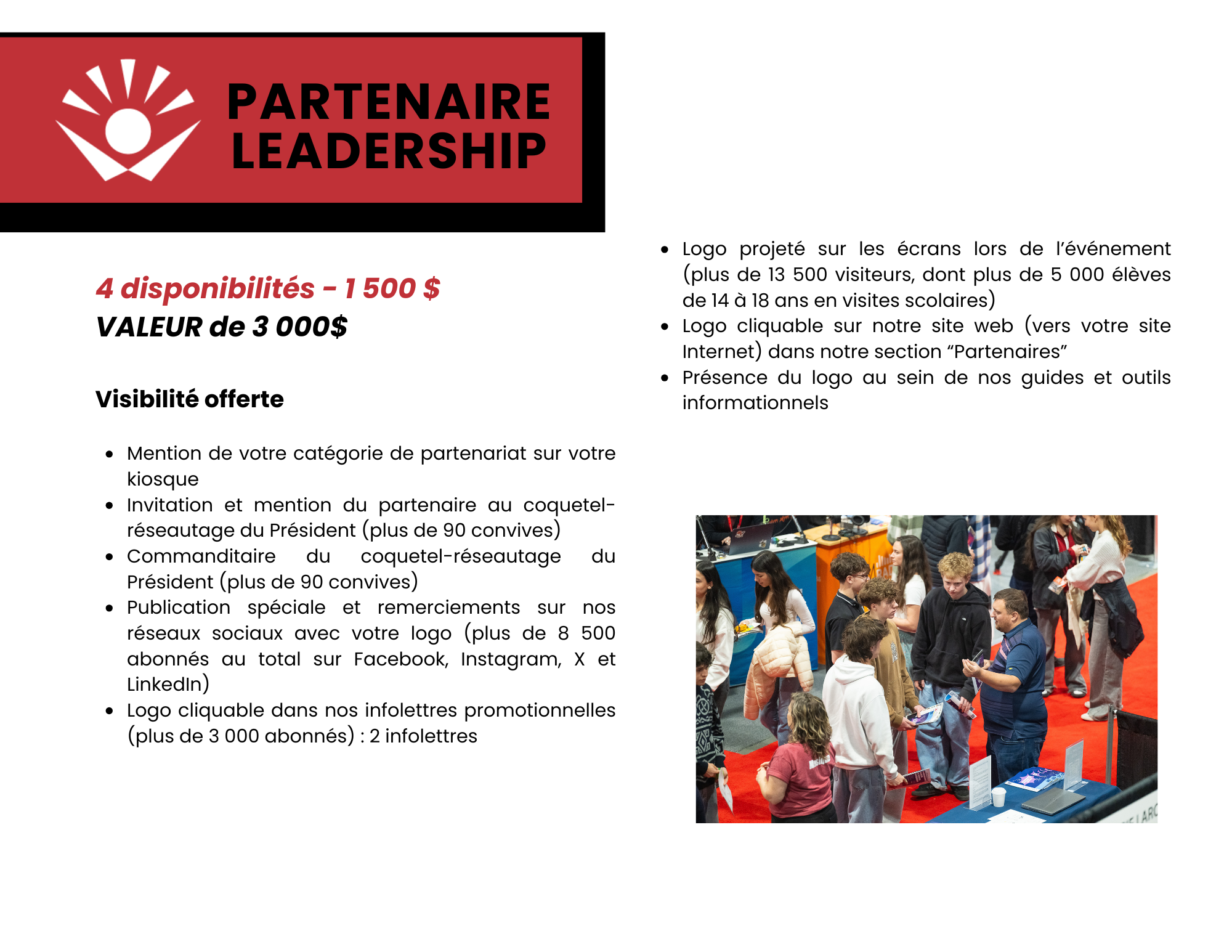 Rejoindre le Salon Carrière Formation de Québec en tant que partenaire, c’est participer activement à façonner l’avenir tout en renforçant votre position dans la communauté.
